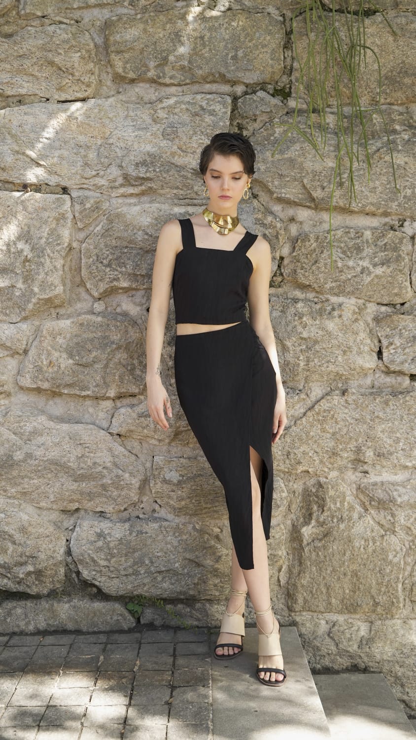 Saia em viscose com leve jacquard em animal print. Cintura alta, zíper na lateral.